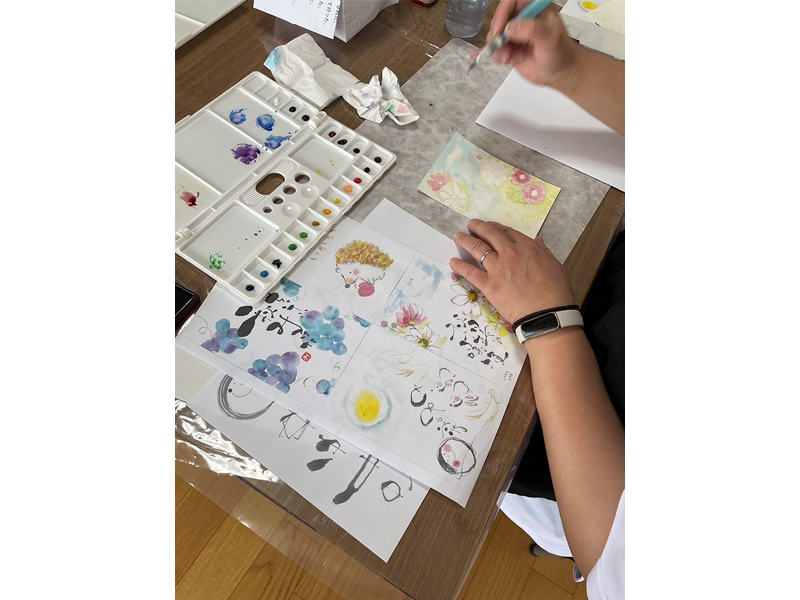 己書(おのれしょ)筆ペンと水彩を使ったアート。「こんなに楽しい事があるなんて!」